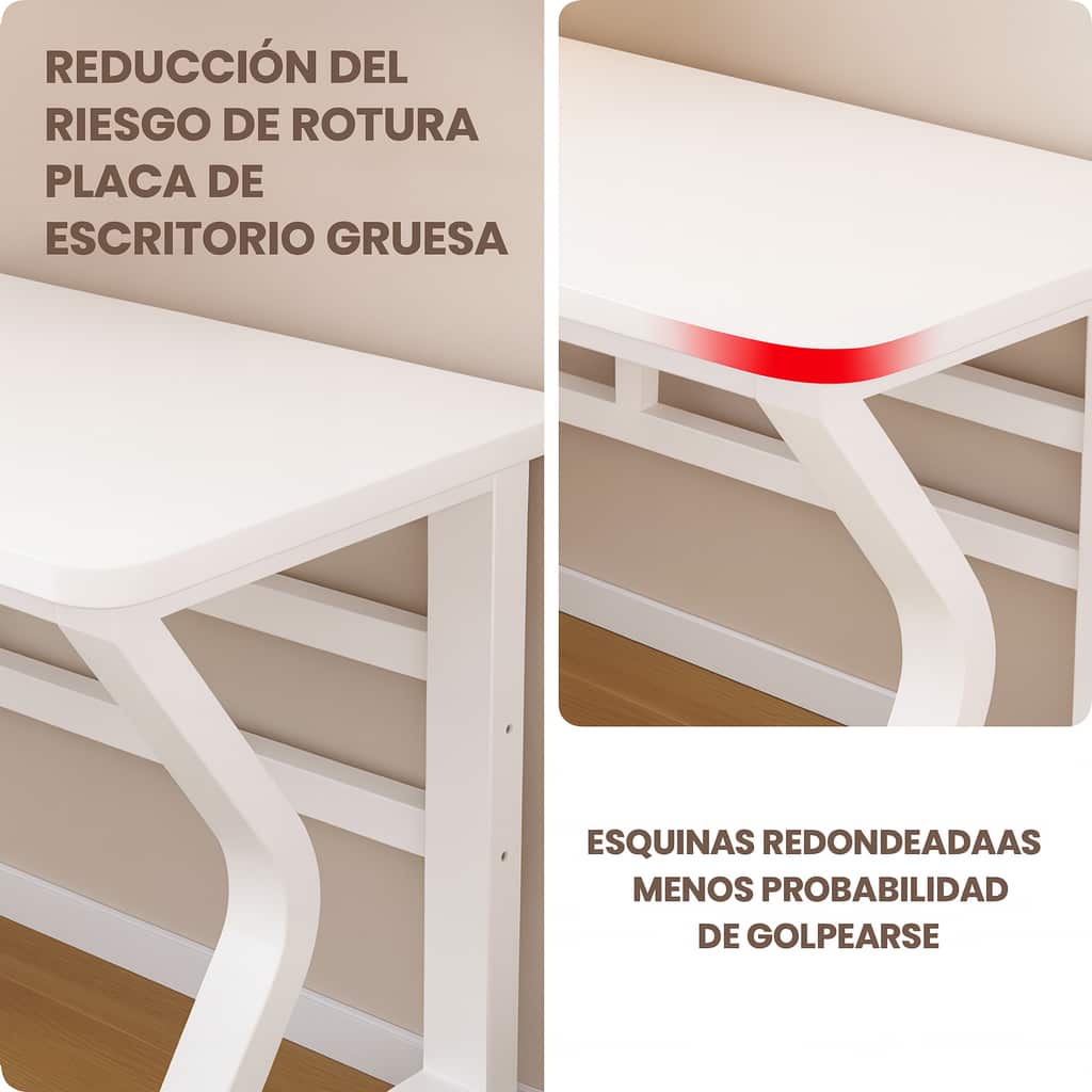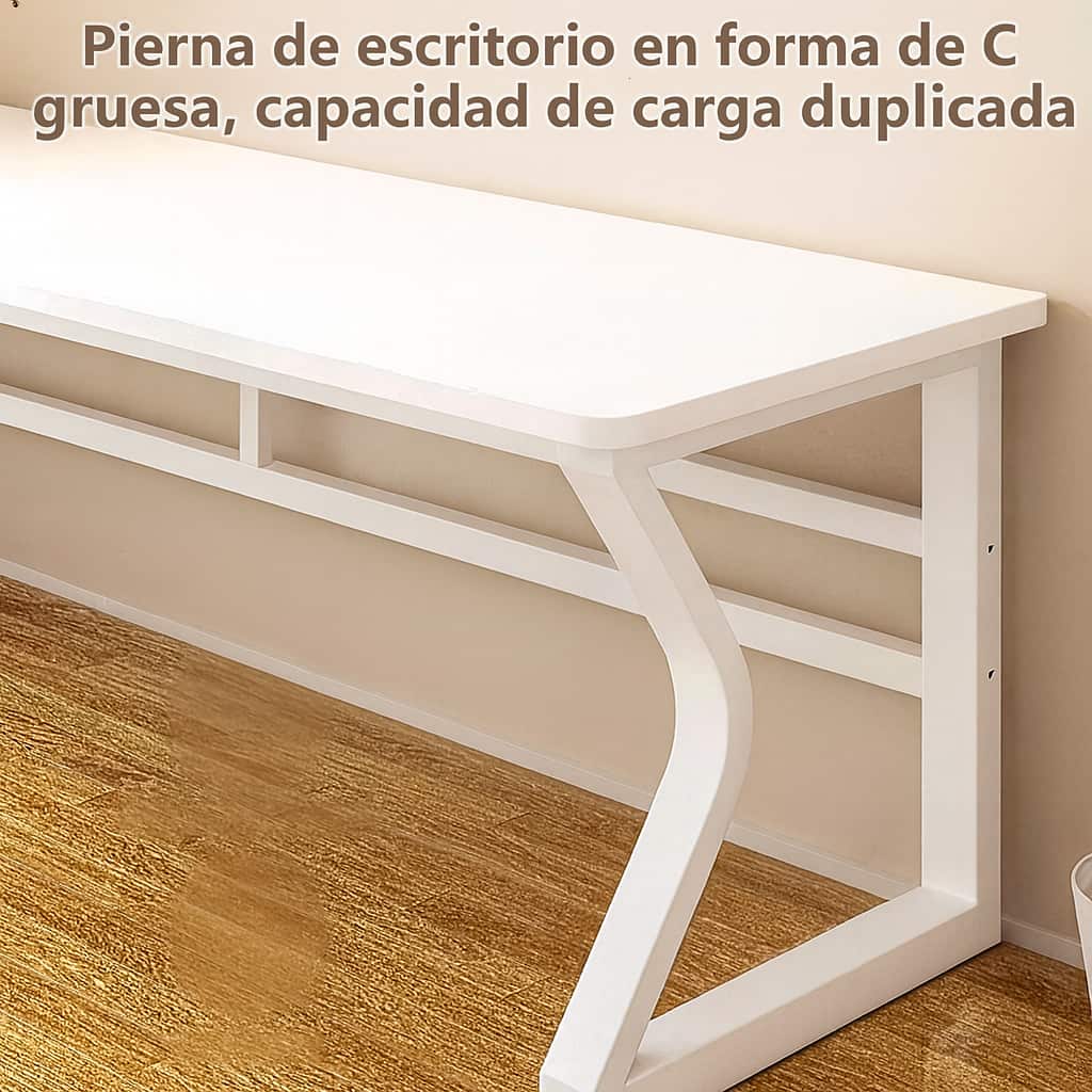 Escritorio doble de diseño moderno y elegante, ideal para oficinas compartidas, estudios o espacios de trabajo en casa. Su estructura blanca con forma curvada aporta un toque contemporáneo y distintivo, combinando estética y funcionalidad. Ofrece una amplia superficie que permite colocar fácilmente dos estaciones de trabajo, computadoras o materiales de oficina. Su estructura reforzada proporciona gran estabilidad y soporte, mientras que el color blanco brillante genera una sensación de amplitud y limpieza visual.
