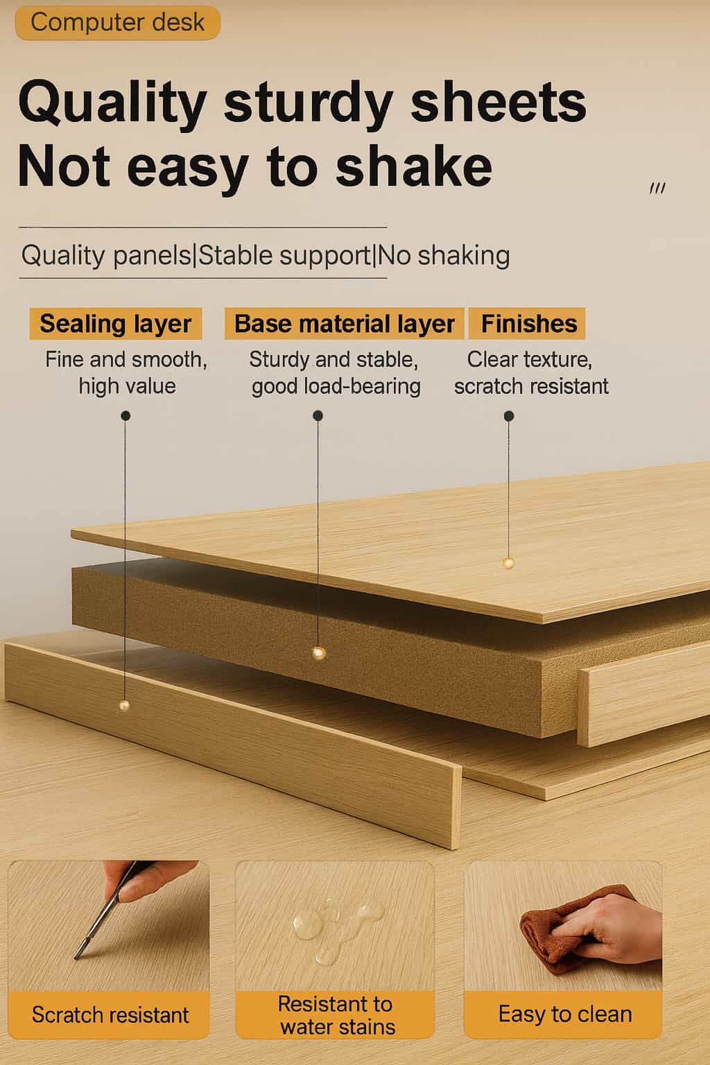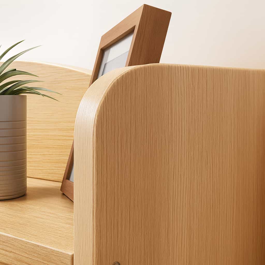 Estructura de MDF de alta densidad con acabado en madera natural clara.