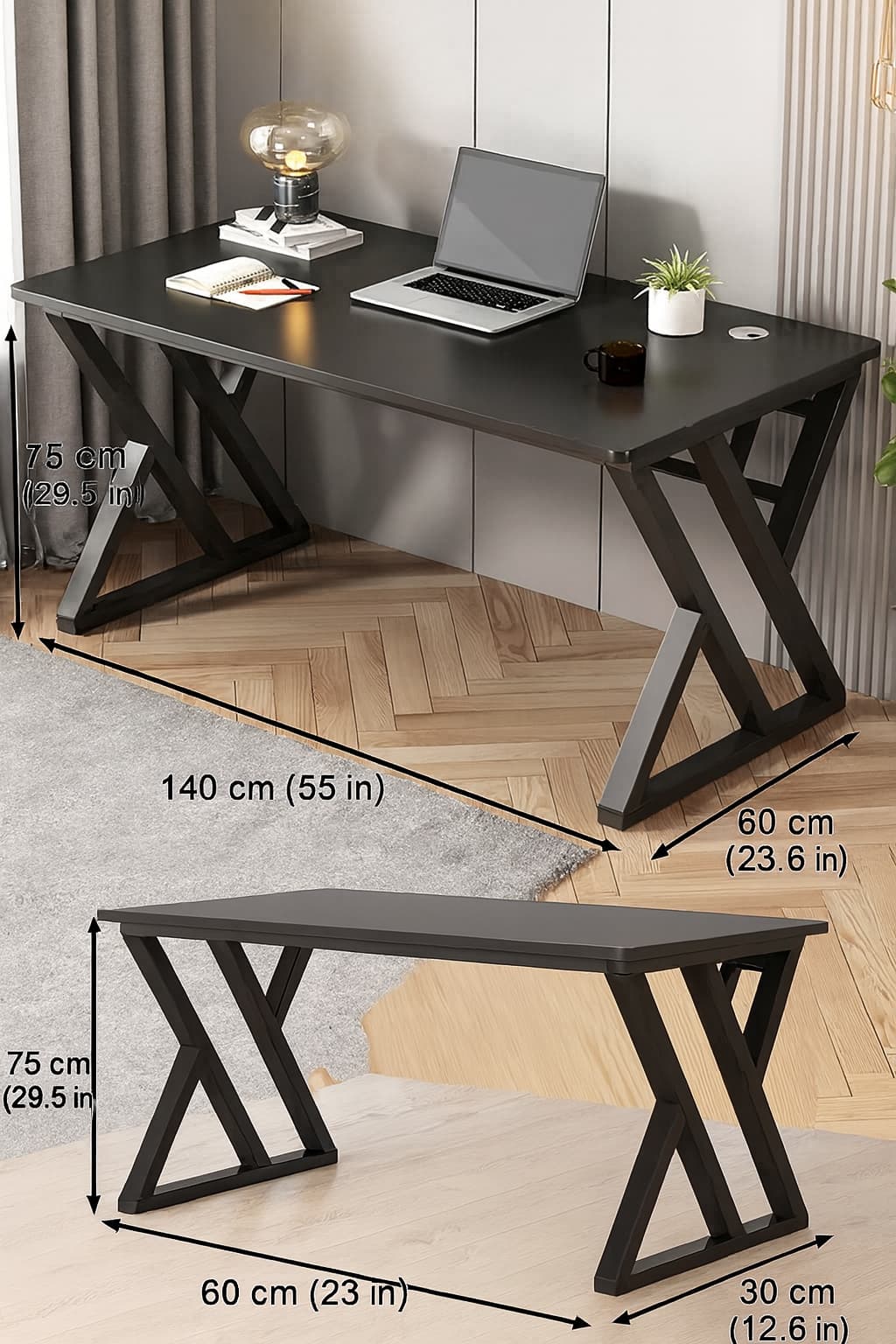 Escritorio moderno de diseño minimalista en color negro, ideal para oficinas, estudios o espacios de trabajo en casa. Su estructura metálica en forma de “K” le brinda estabilidad y un estilo contemporáneo, mientras que la amplia superficie rectangular ofrece un espacio cómodo para computadora, libros y materiales de trabajo. Su diseño sobrio y funcional permite integrarlo fácilmente en ambientes modernos o industriales, destacando por su resistencia y líneas geométricas limpias.