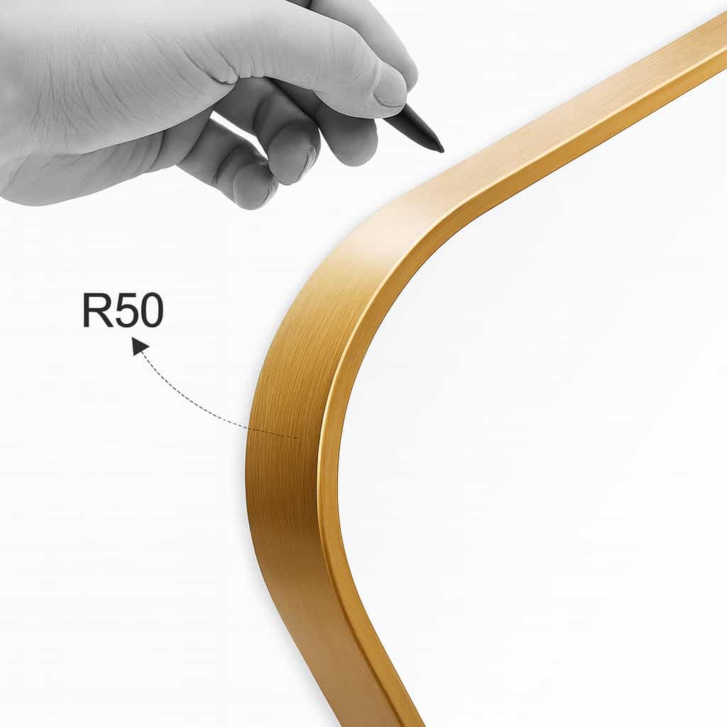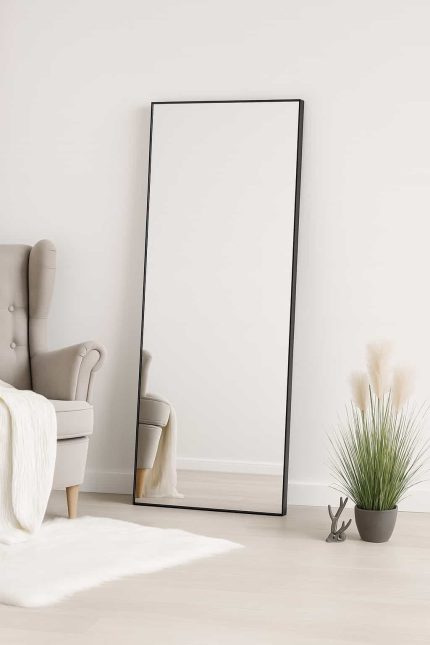 Espejo de cuerpo entero con marco dorado y bordes redondeados, ideal para añadir un toque de elegancia y luminosidad a dormitorios, vestidores o salas modernas. Su diseño vertical y delgado crea una sensación de amplitud en el espacio, mientras el marco metálico dorado aporta sofisticación y calidez. Puede instalarse en la pared o apoyarse directamente sobre el suelo, adaptándose a distintos estilos decorativos, desde el contemporáneo hasta el clásico chic.