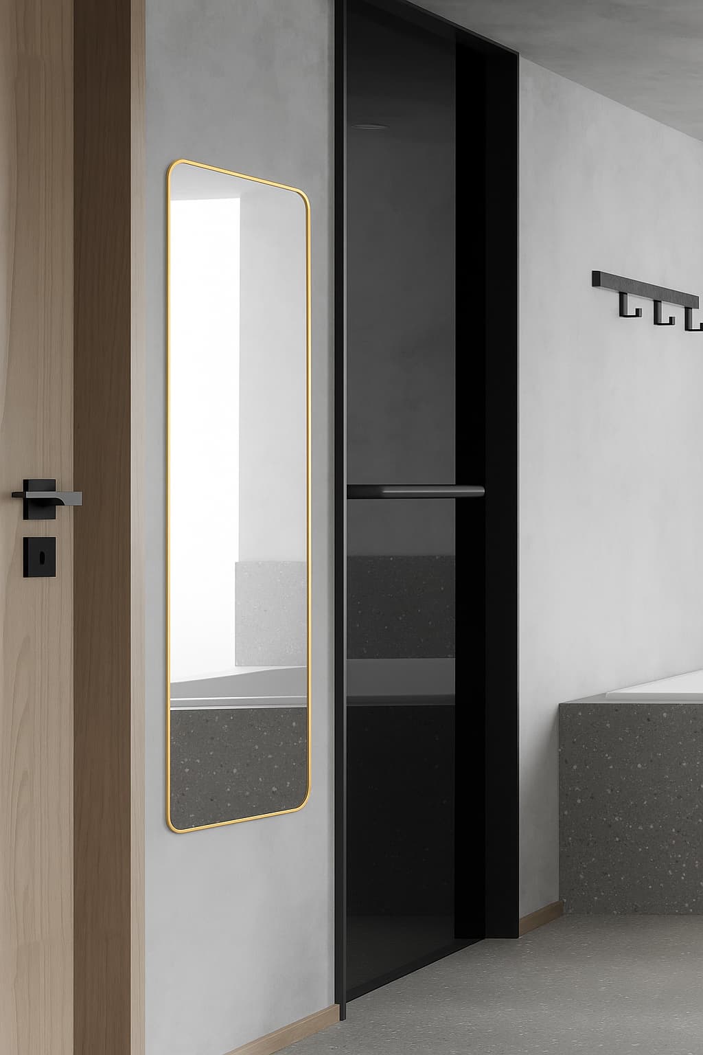 - Espejo de cuerpo completo con forma rectangular y esquinas redondeadas.