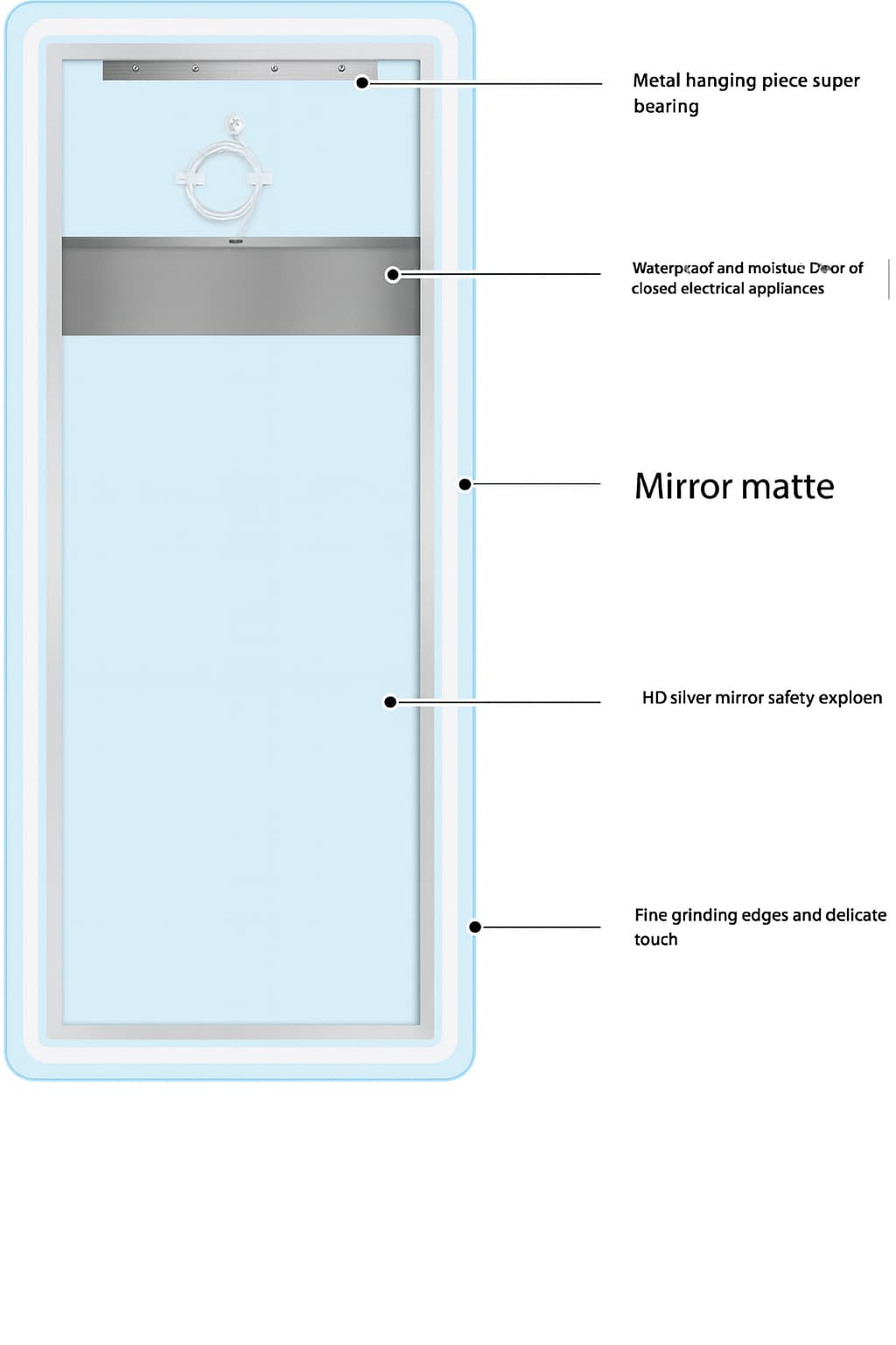 • Espejos rectangulares de cuerpo completo con iluminación LED.