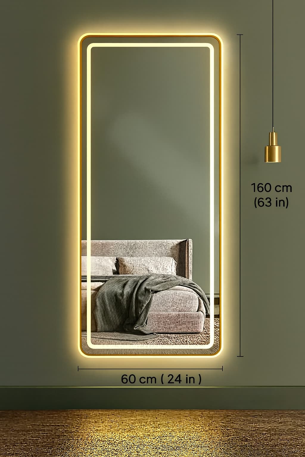 Espejos de cuerpo entero con iluminación LED perimetral, diseñados para espacios modernos como boutiques, vestidores o estudios de belleza. Su formato rectangular alargado y marco con bordes redondeados aportan elegancia y modernidad, mientras que la luz LED integrada crea una iluminación uniforme y suave ideal para resaltar la figura o la ropa. Los marcos en tono dorado añaden un toque de lujo contemporáneo, haciendo de cada pieza un elemento decorativo y funcional que amplía visualmente los ambientes.