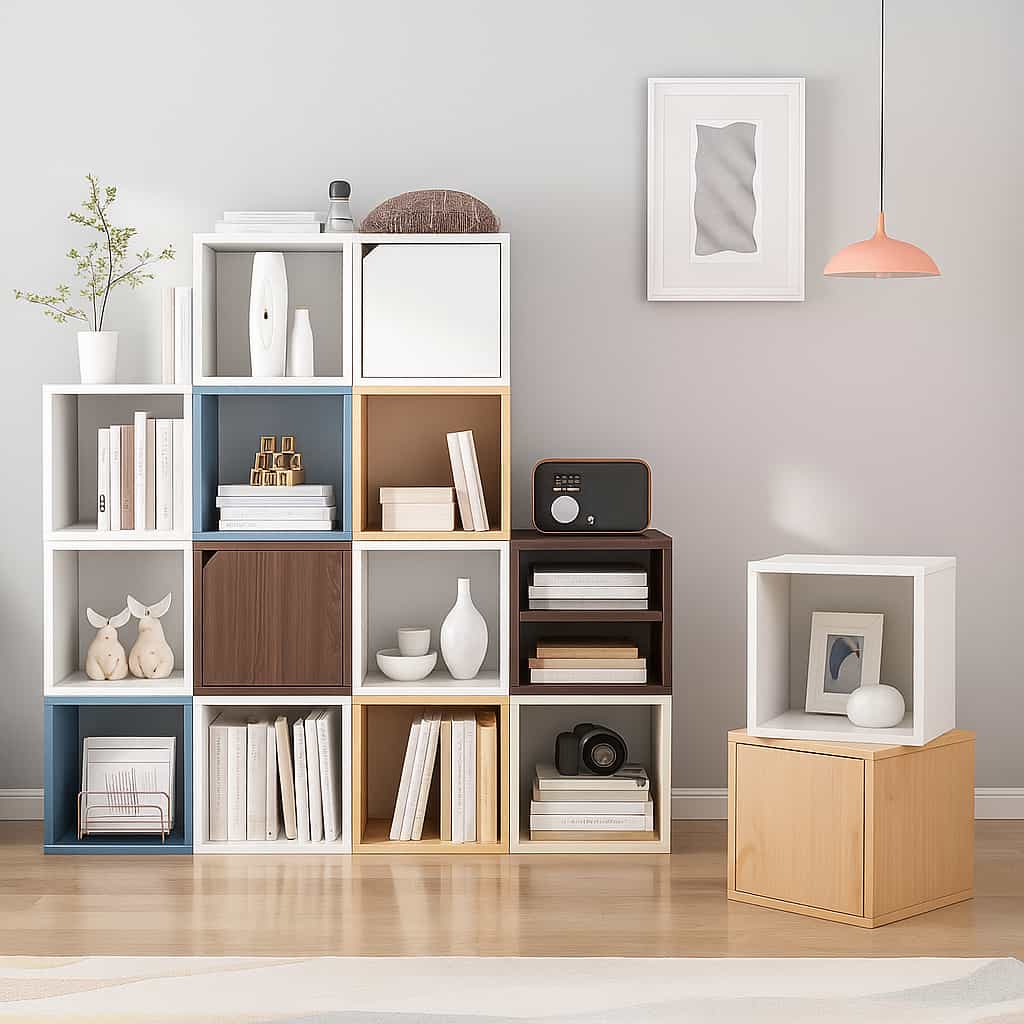 Módulo de almacenamiento abierto de diseño minimalista, ideal para espacios modernos y funcionales. Su estructura cúbica permite utilizarlo como mesa auxiliar, organizador o estante independiente. Su acabado en madera natural aporta calidez y armonía, adaptándose perfectamente a interiores nórdicos o contemporáneos.