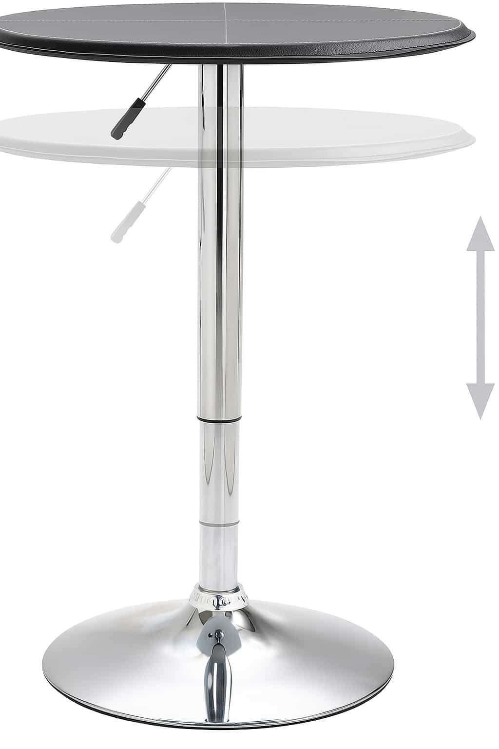 Mesa alta redonda ajustable con tablero negro y base cromada. Moderna, funcional y perfecta para bar o cocina.