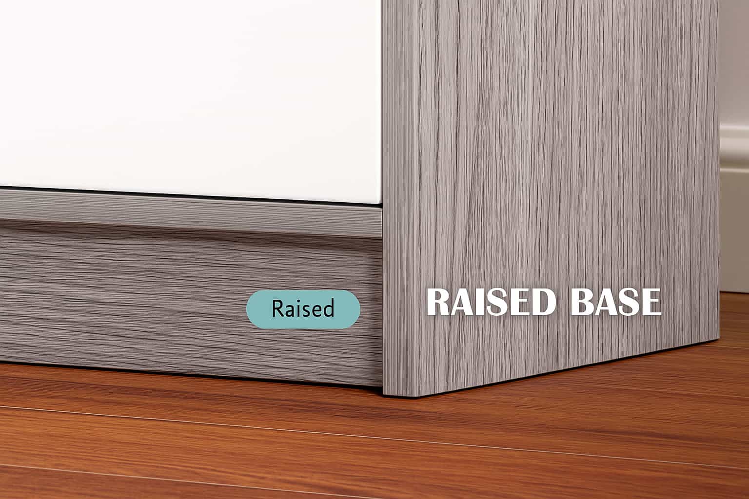 Fabricado en MDF de alta densidad con acabado laminado texturizado tipo madera gris y paneles frontales en blanco brillante.