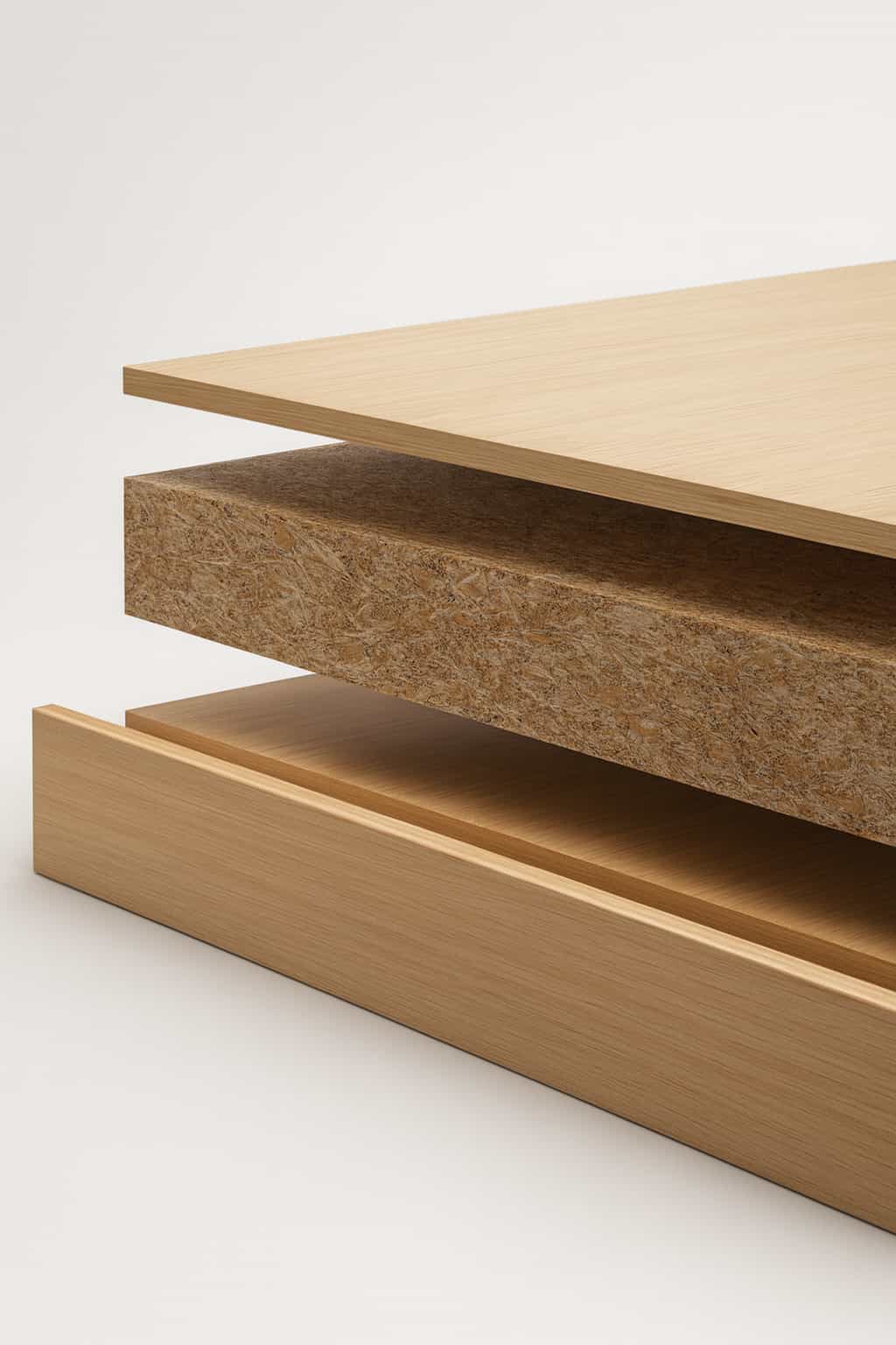 Estructura de MDF laminado con acabado en madera natural clara.