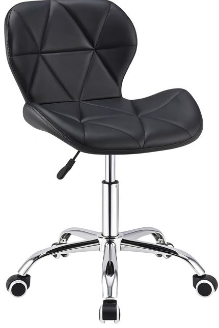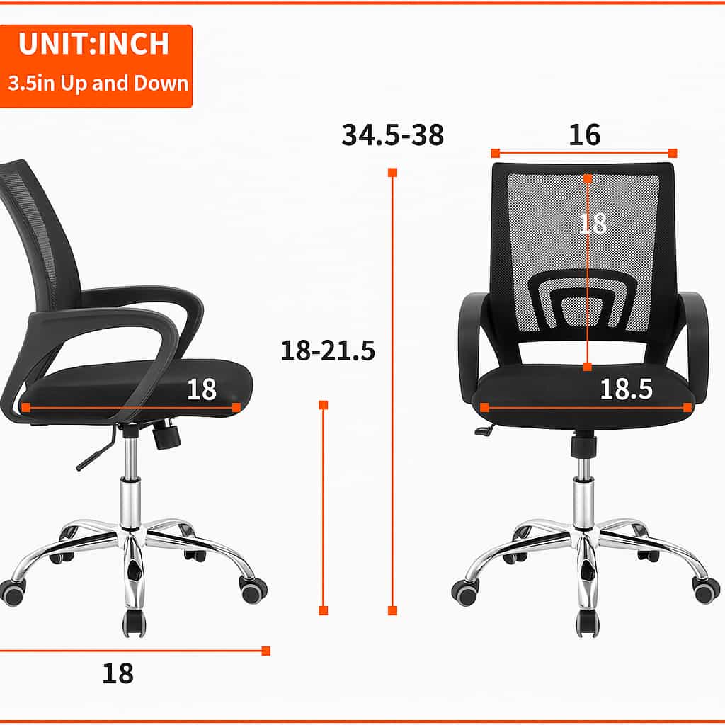Estructura metálica cromada, asiento tapizado en malla y espuma de alta densidad, base de acero con ruedas de poliuretano.