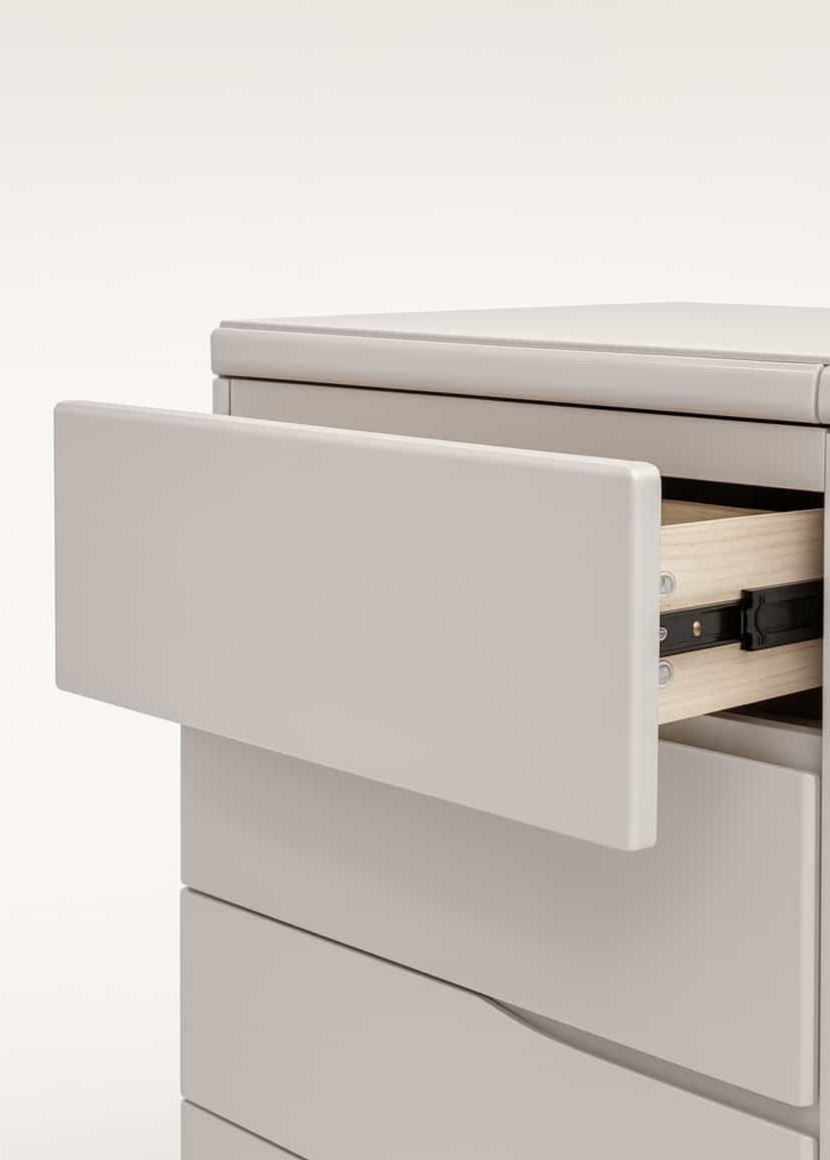 Módulo lateral con seis gavetas amplias de apertura suave.
